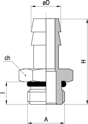 RC340 9 1/4 - Portagomma maschio cilindrico con O-Ring