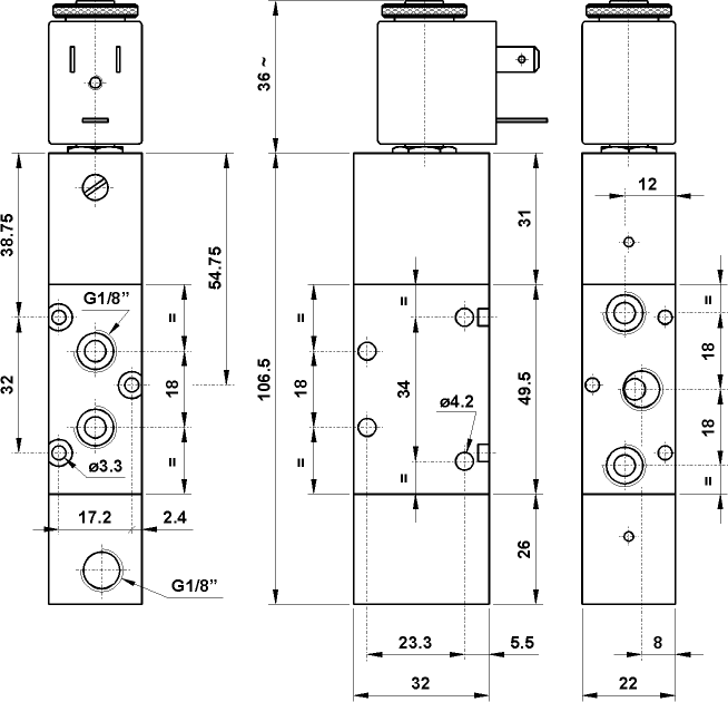 5/2 1/8" comando elettrico, riposizionamento a comando pneumatico, senza bobina